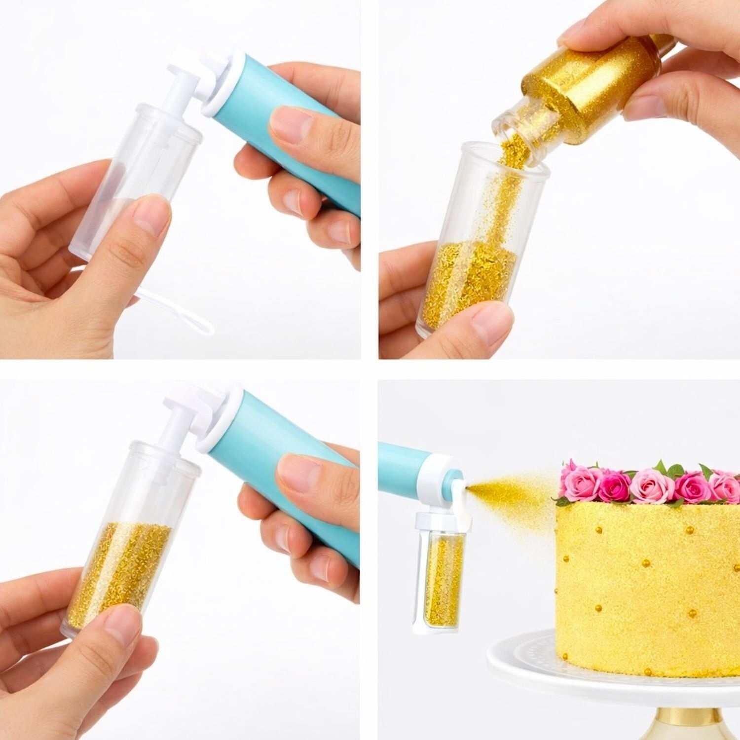 - Añadir el producto dentro del depósito, y pulverizarlo manualmente sobre nuestra elaboración.