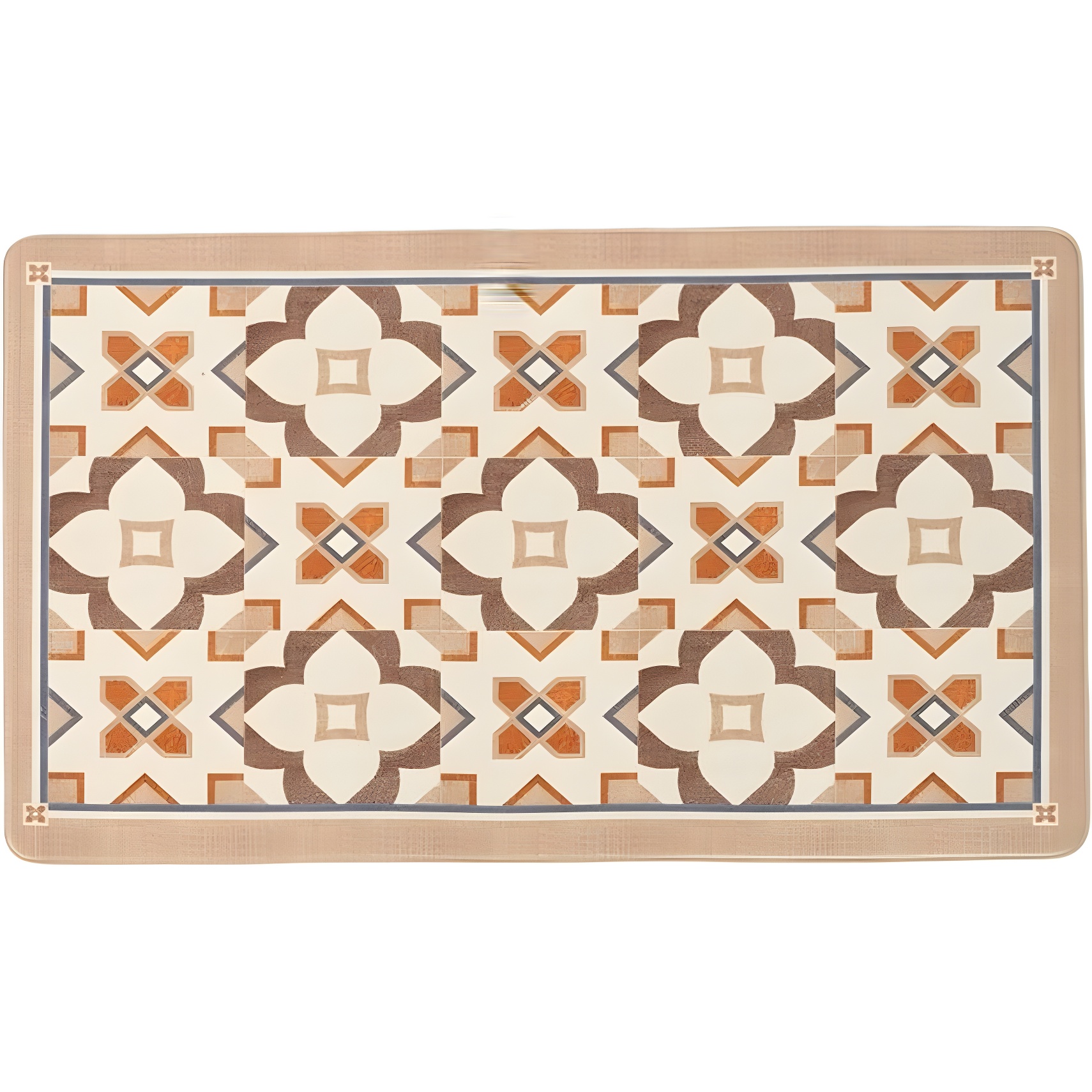Alfombra con diseño inspirado en azulejos hidráulicos clásicos que aporta un aire vintage y elegante a cualquier cocina. Su patrón geométrico y tonos cálidos crean un punto focal decorativo que completa la decoración sin recargar el espacio. Ideal para renovar rincones de trabajo y añadir personalidad con un toque retro.