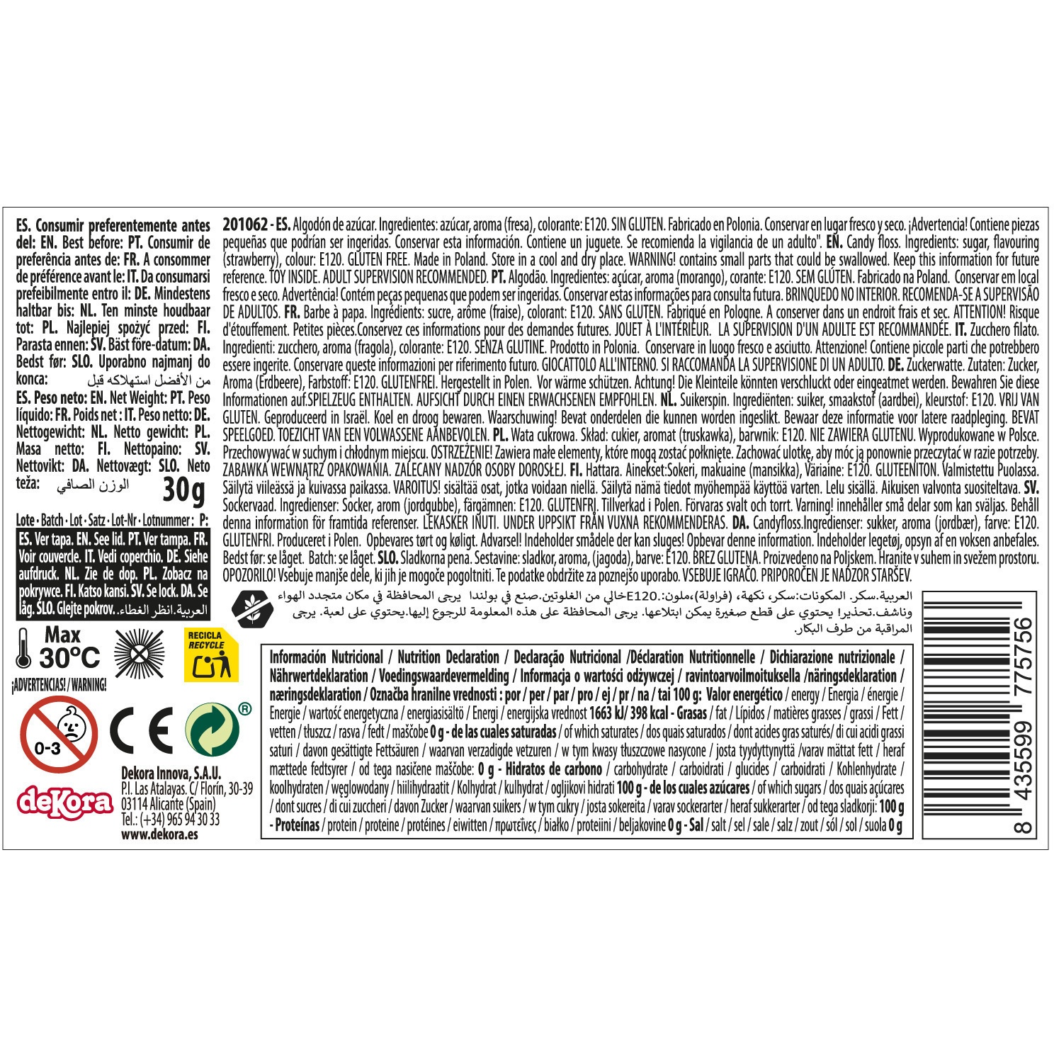 Ingredientes: azúcar, aroma (fresa), colorante: E120.