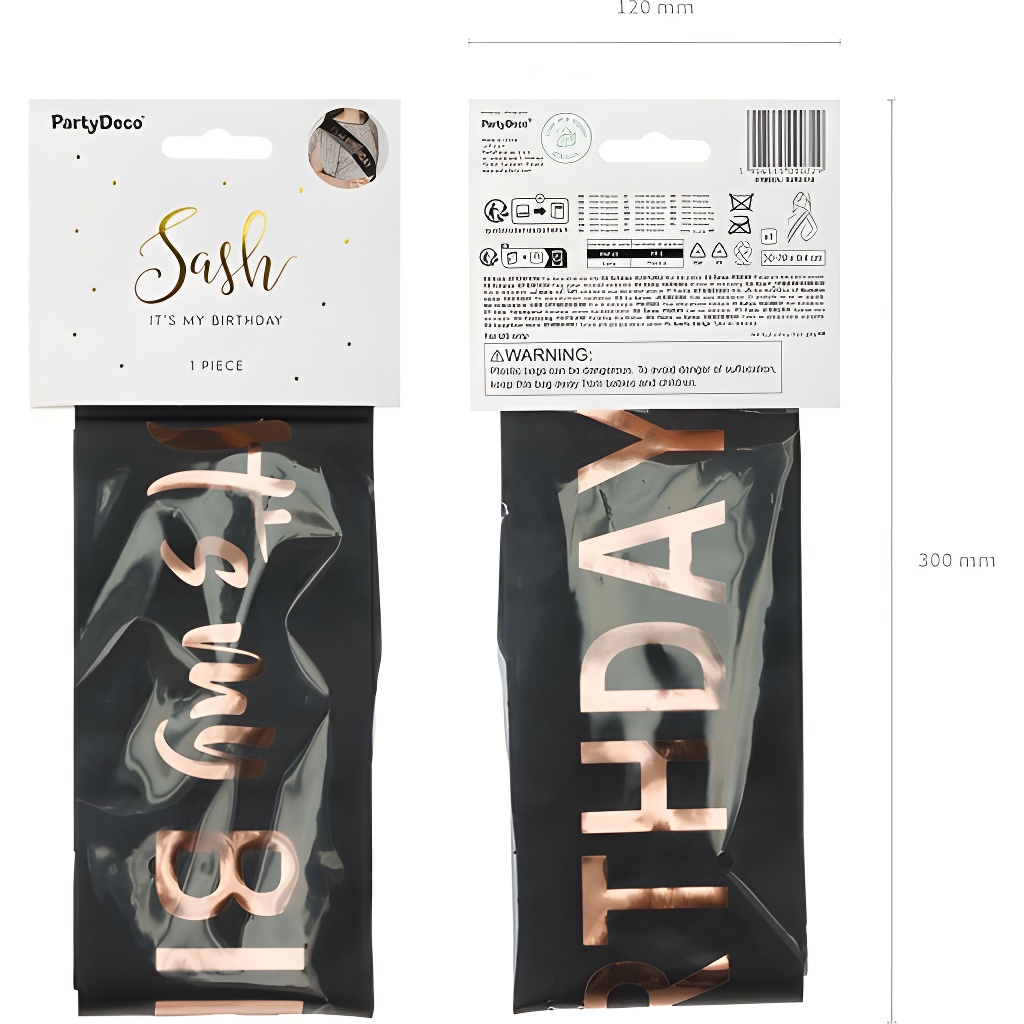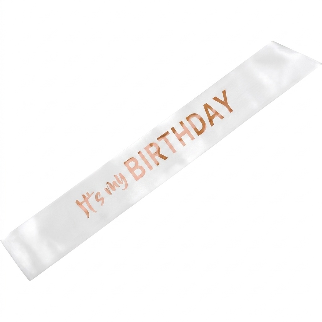 Banda de satén negro con la inscripción en oro rosa “It’s my birthday” para celebrar con estilo.
