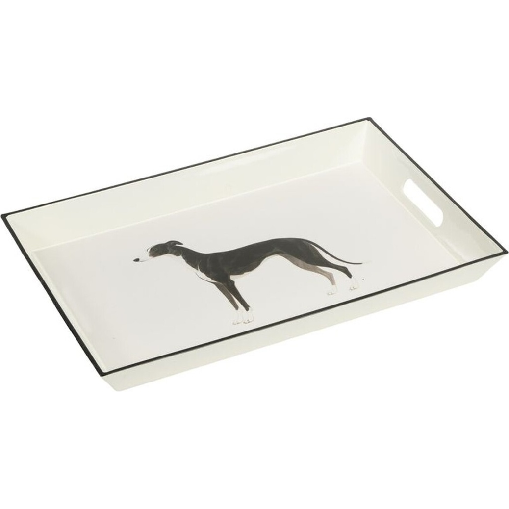 Elegante bandeja con asas que combina un diseño con ilustración de galgo y un acabado de estilo clásico.