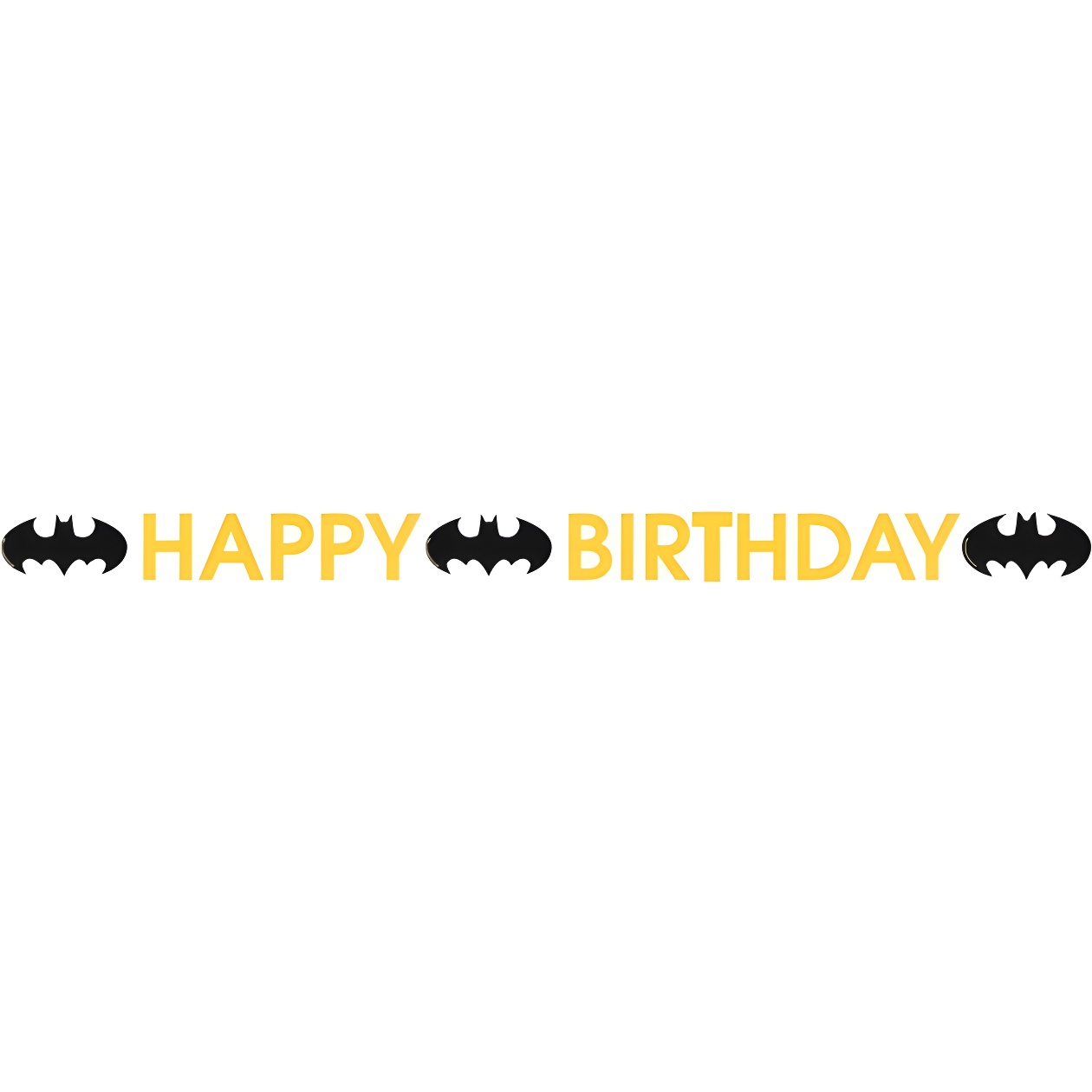 Banderín decorativo con la leyenda "HAPPY BIRTHDAY" y el icónico logo de Batman, pensado para ambientar cumpleaños infantiles.