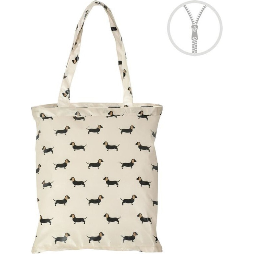 Bolsa impermeable con cremallera y estampado de teckels que aporta un toque divertido y original a tus salidas. Diseñada para llevar lo imprescindible con seguridad gracias a su cierre superior.