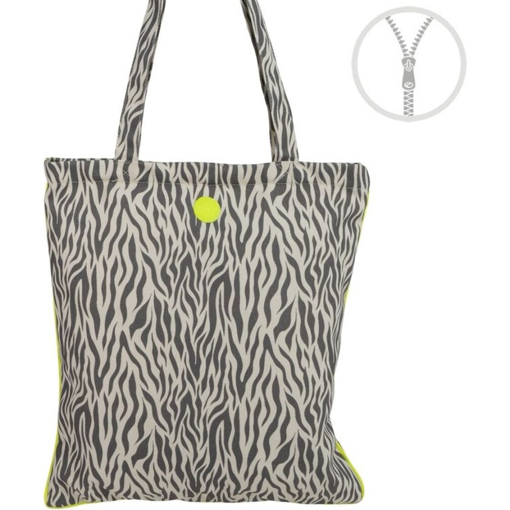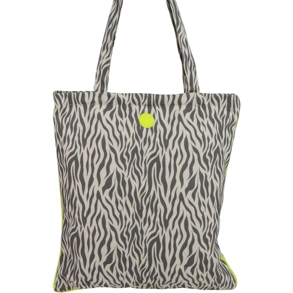 Bolsa tote con estampado animal print cebra y detalles en color flúor que aportan un toque moderno y llamativo.