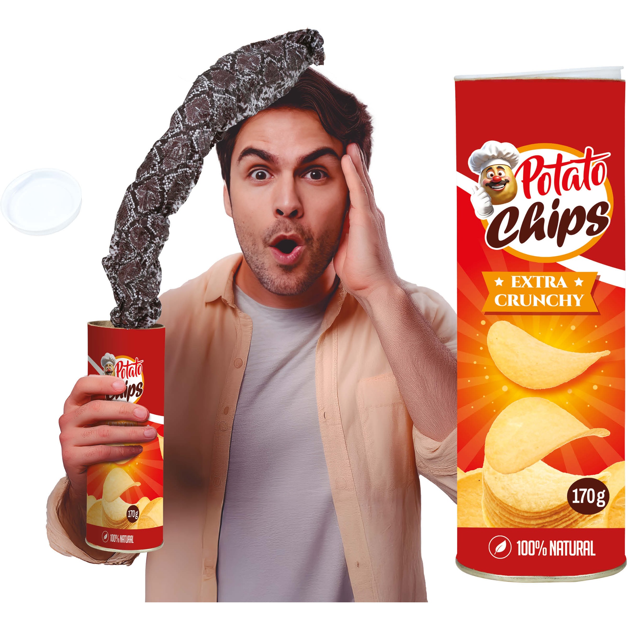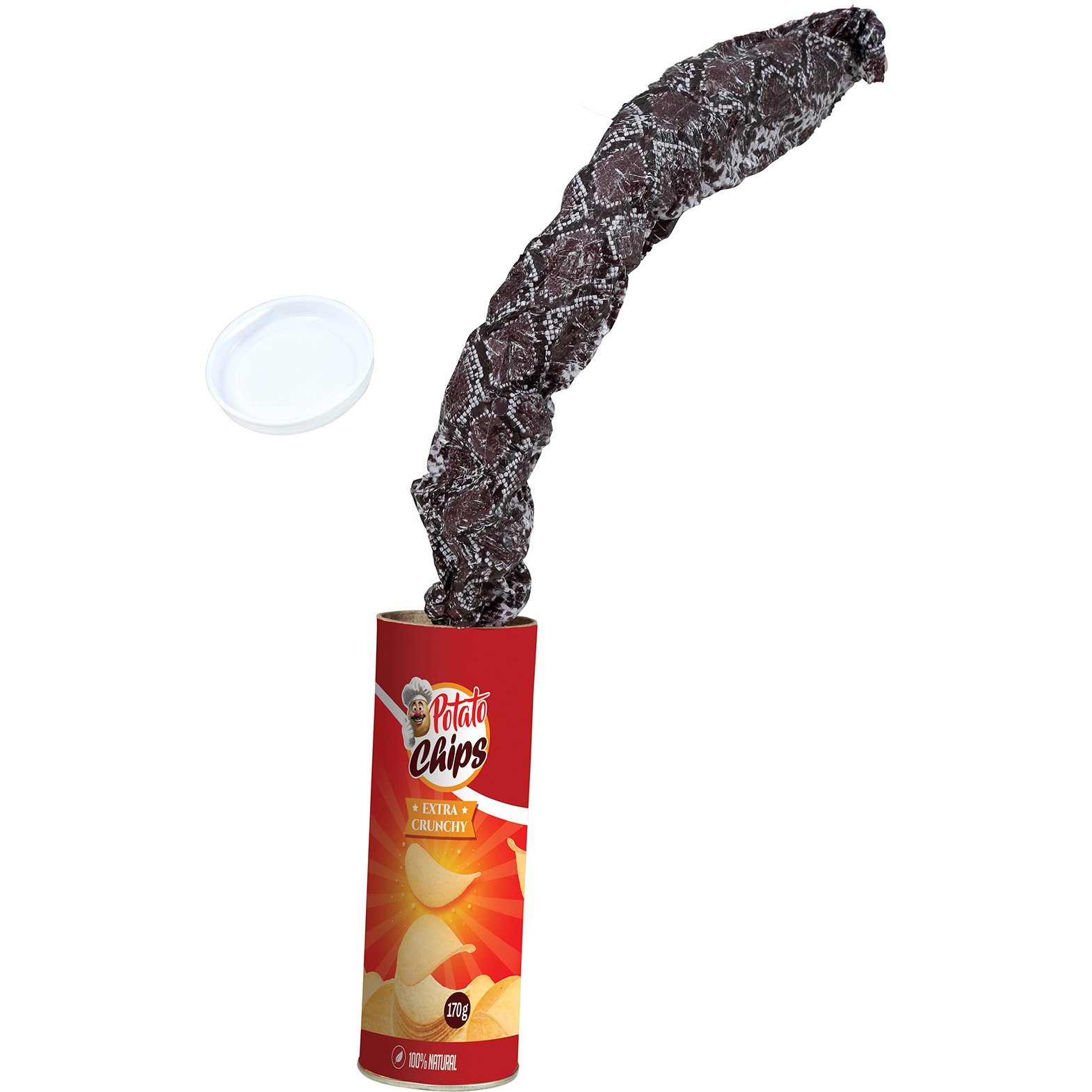 Bote de patatas con serpiente sorpresa para bromas