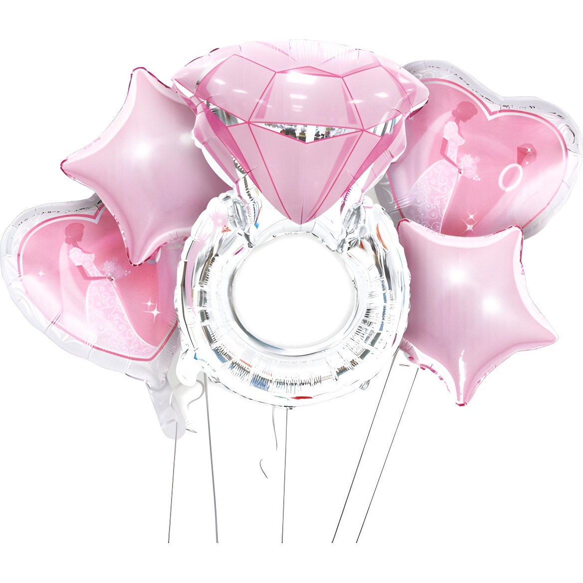 Bouquet de anillo de diamante plata y rosa - 5 unidades