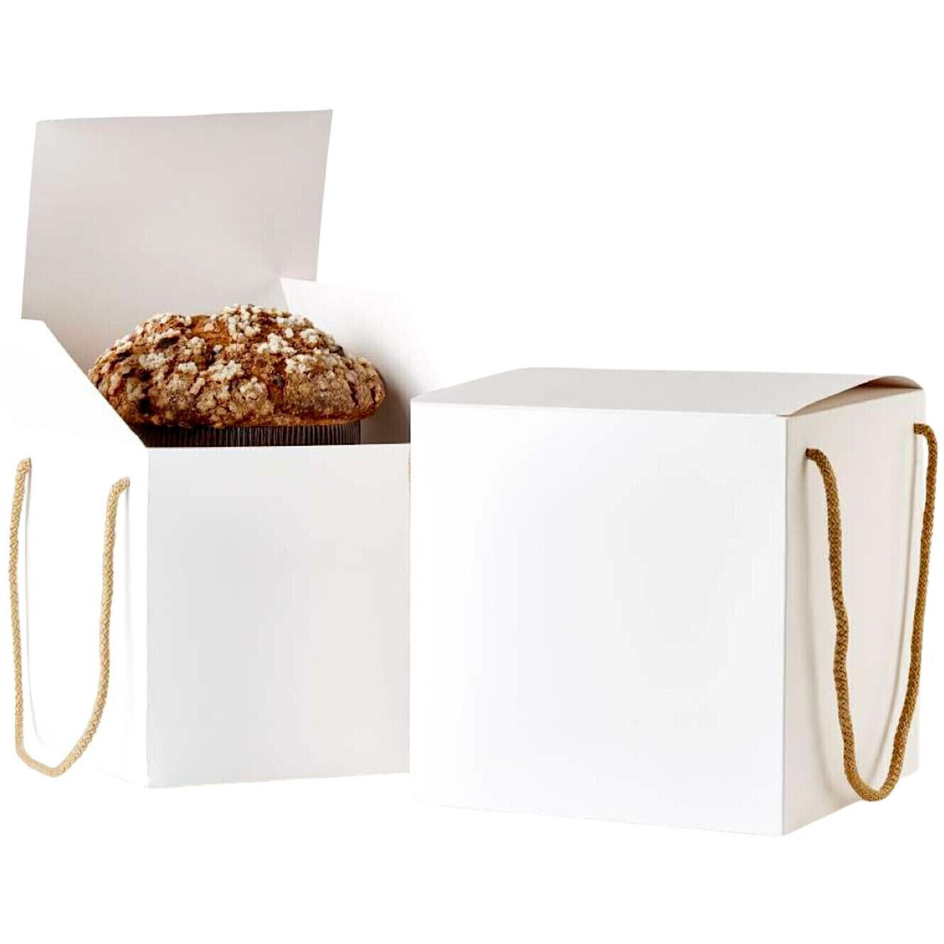 Caja de 18,5 x 18,5 x 18,5 cm blanca para panettone