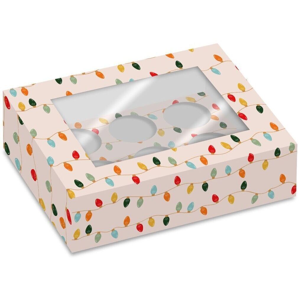 Caja de 25,5 x 17 x 8 cm para cupcakes de Luces de Navidad - 2 unidades