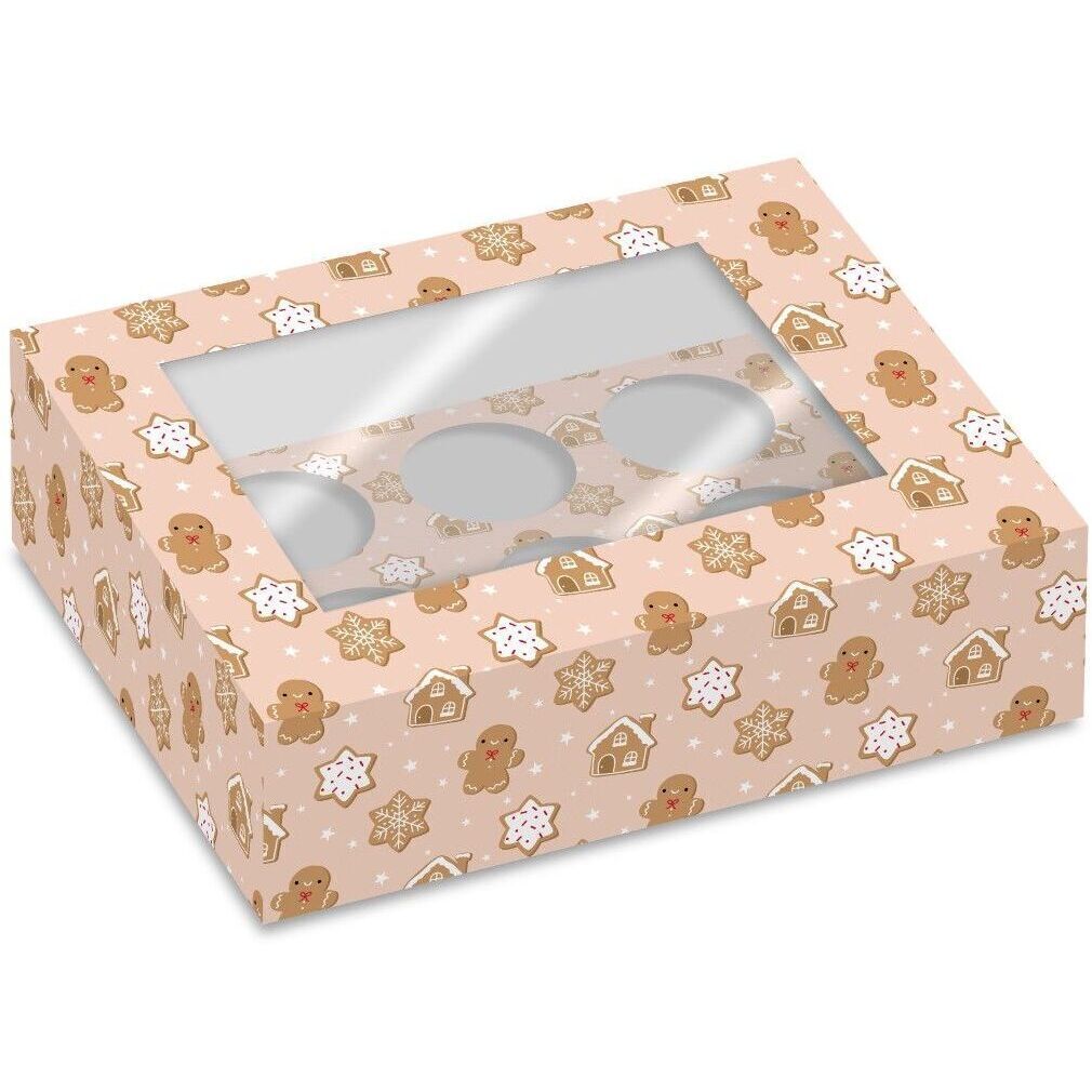 Caja de 25,5 x 17 x 8 cm para cupcakes de muñeco de jengibre - 2 unidades