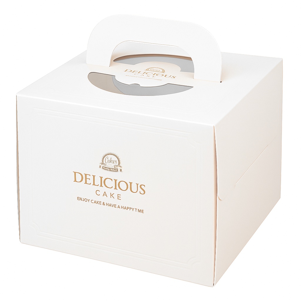 Elegante caja de cartón rígido, perfecta para transportar y presentar tartas, pasteles y otras creaciones de repostería.