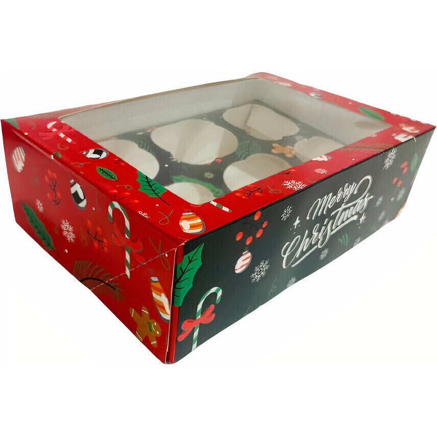Caja para 6 cupcakes de Navidad Merry Christmas