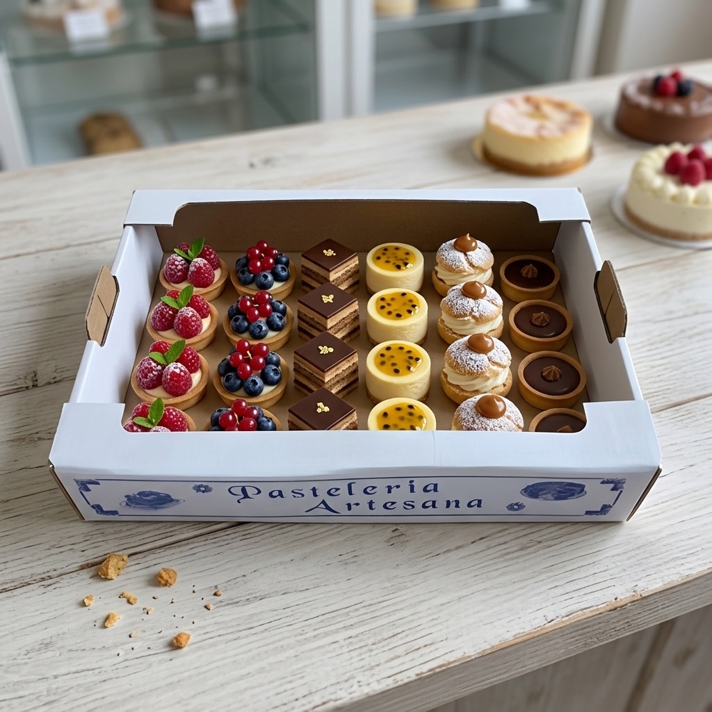 - Cartón resistente que aporta rigidez y soporte para tartas y bandejas.