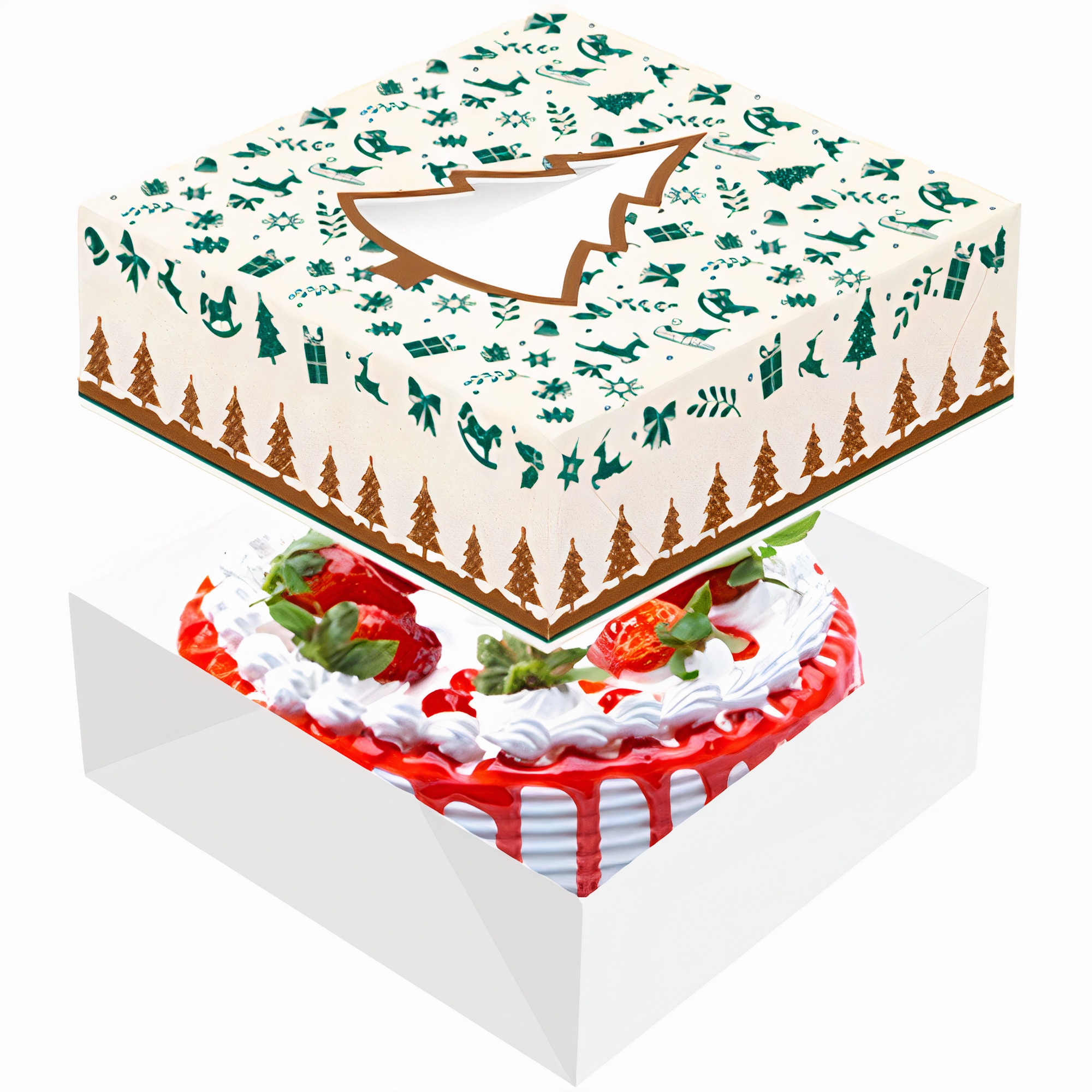 Caja para roscón de Reyes de 30 x 30 x 7,5 cm con árbol de Navidad