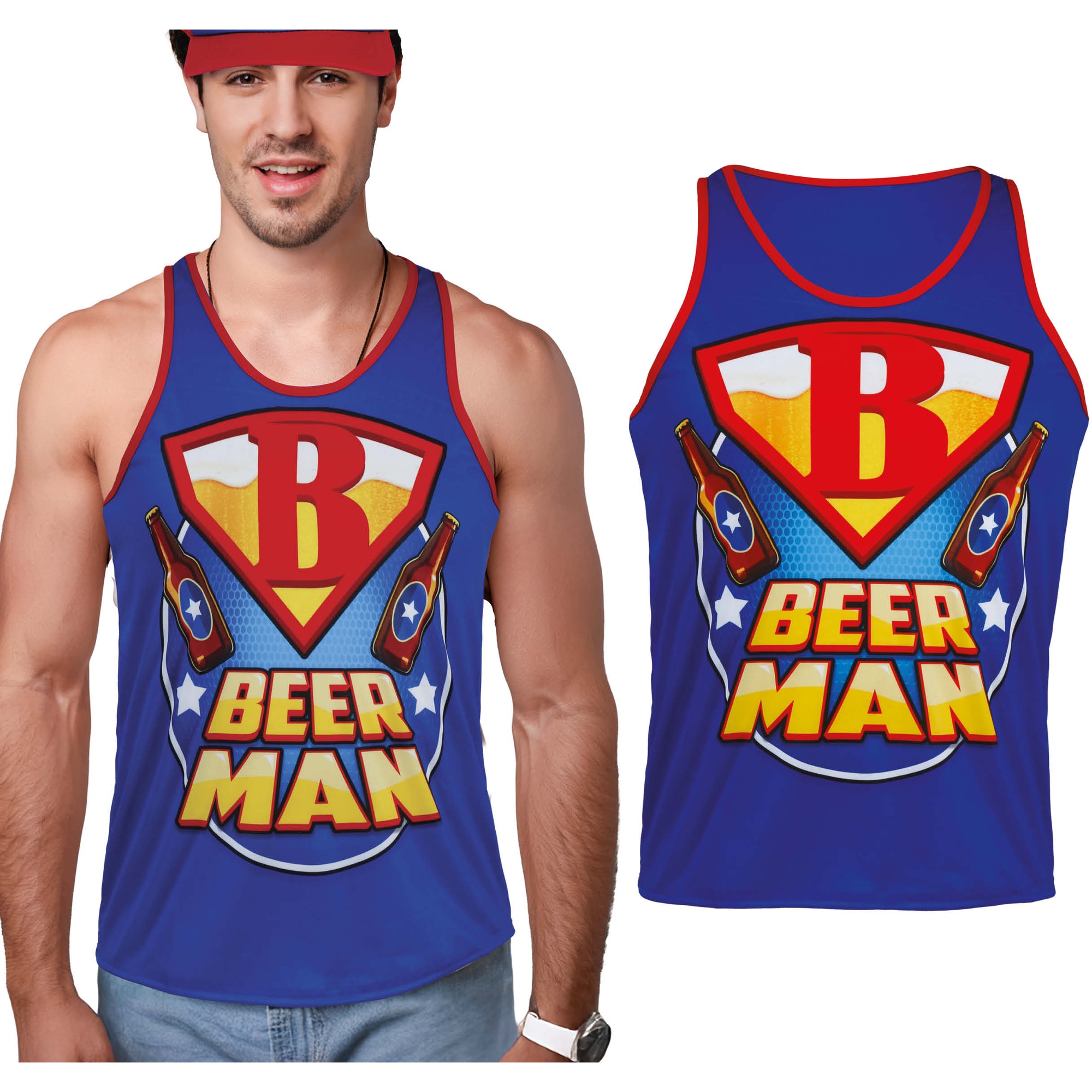 Divertida camiseta sin mangas con el icónico diseño "Beer Man", pensada para sumar humor y color a tus reuniones. Presenta un estampado estilo cómic con botellas y tipografía llamativa que destaca en fiestas y encuentros cerveceros. Corte sin mangas que aporta libertad de movimiento y un look desenfadado. Prenda ideal para adultos que buscan un toque original y festivo en su ropa.