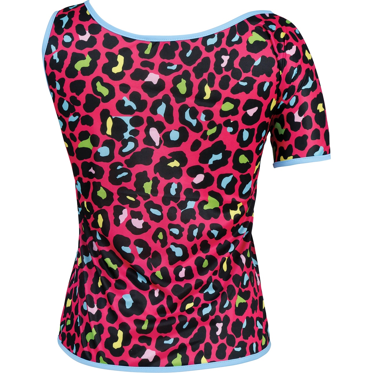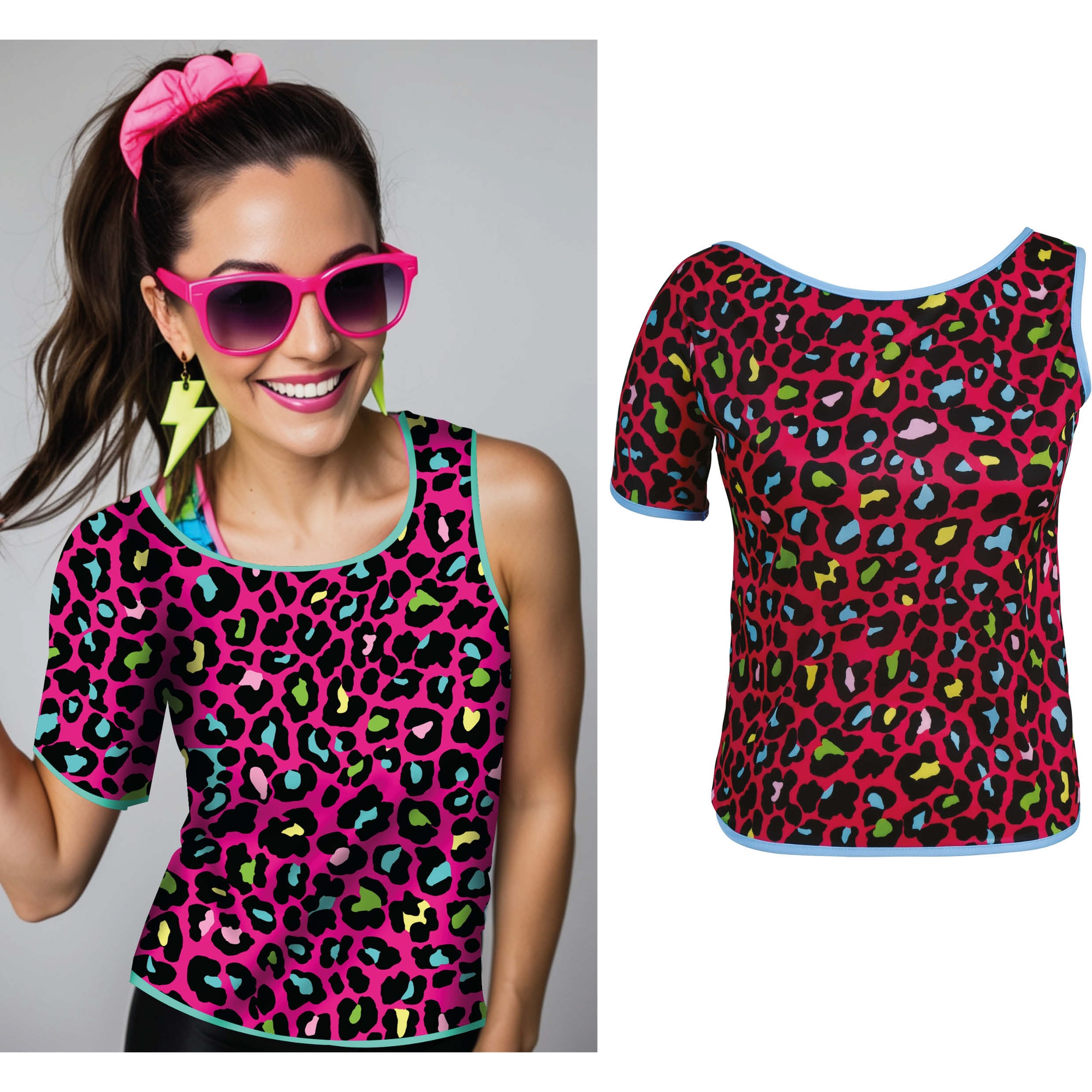 Una camiseta de inspiración ochentera con estampado de leopardo en colores neón que atrae todas las miradas. Su corte cómodo de manga corta está pensado para adultos que buscan un look divertido y retro. El tejido de poliéster aporta ligereza y una caída favorecedora. Perfecta para combinar con accesorios flúor y crear atuendos festivos con aire vintage. Dale vida a tu fiesta con un toque 80s lleno de color.