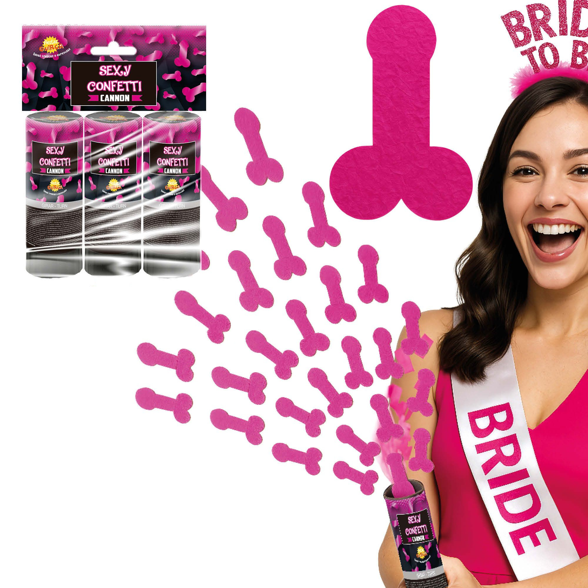 Cañón de confeti de Penes Fucsia de 10,5 cm - 3 unidades