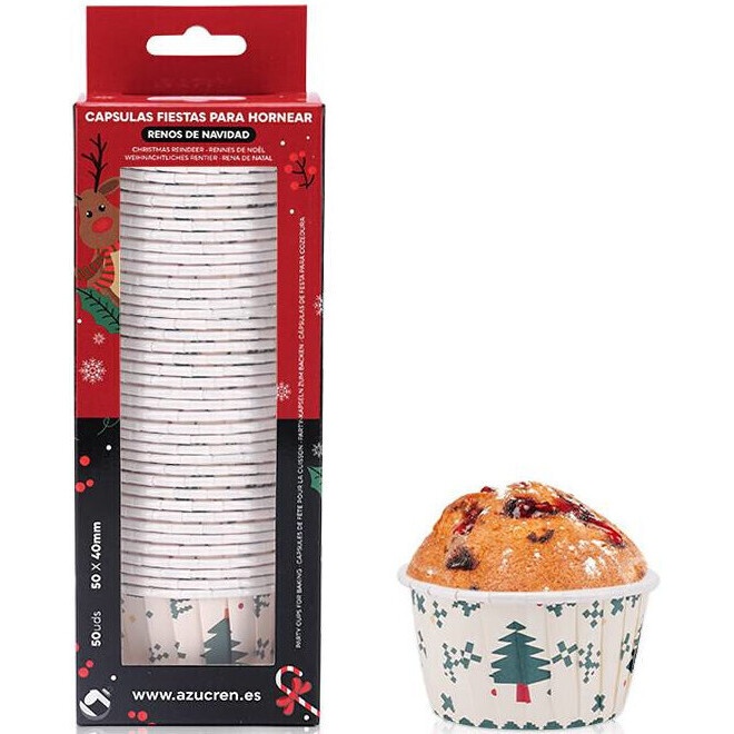 Cápsulas para cupcakes de 5 cm de abetos de Navidad - 50 unidades