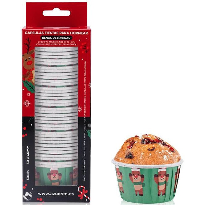 Cápsulas para cupcakes de 5 cm de renos de Navidad - 50 unidades