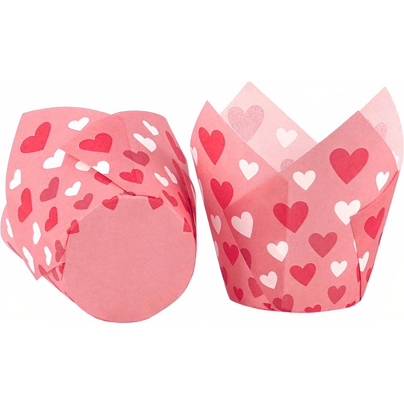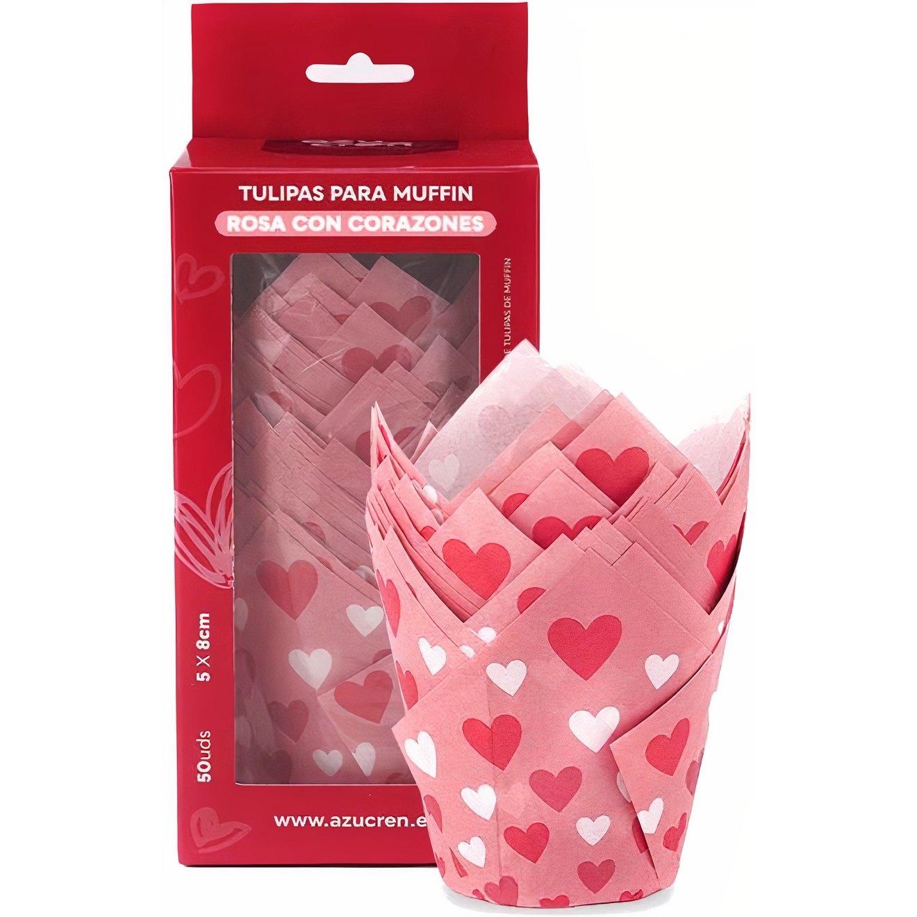 Cápsulas tulipán de papel para muffins de corazones San Valentín - Azucren - 50 unidades