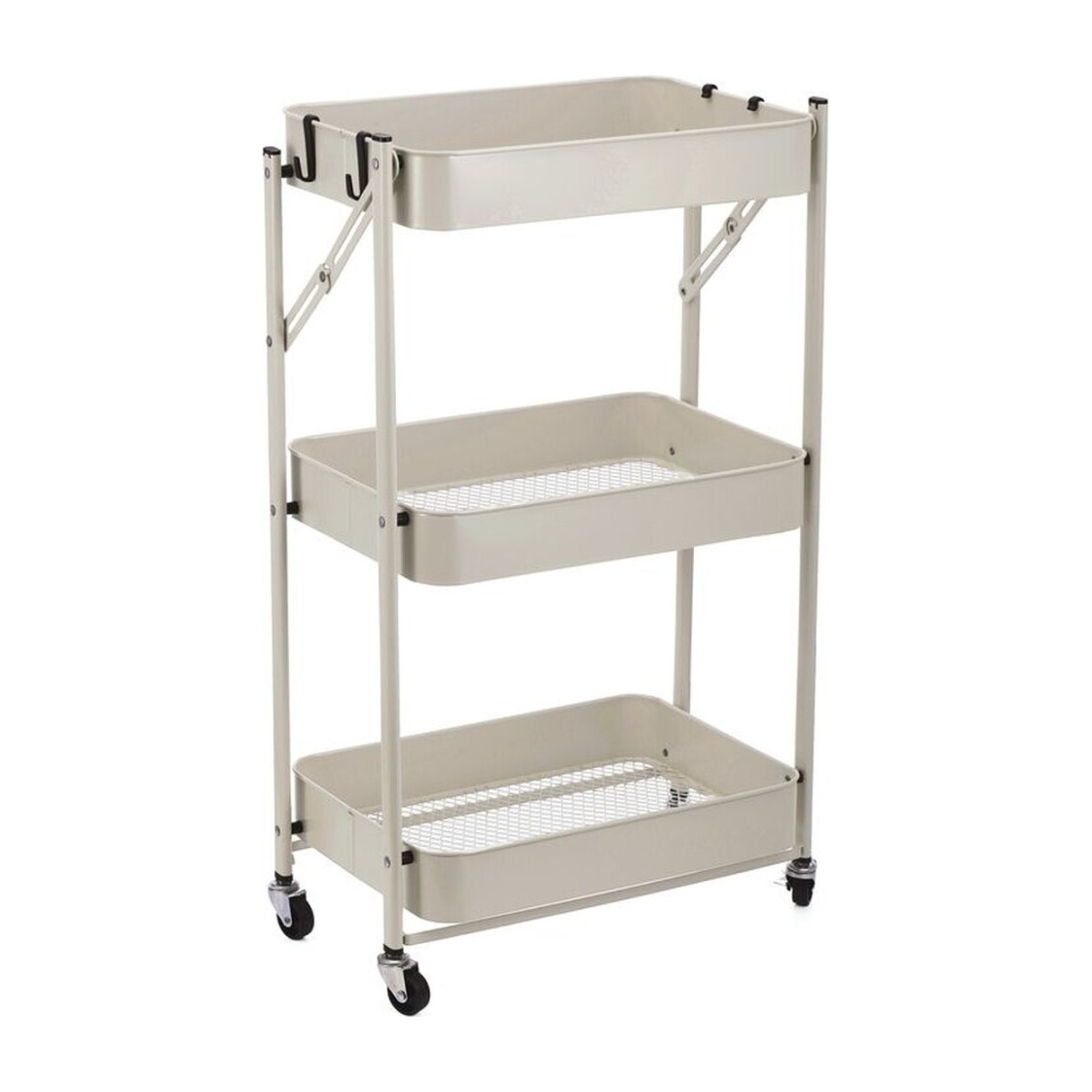 Carrito auxiliar plegable multiusos en acabado natural, diseñado para facilitar la organización en cocina y hogar. Su estructura de tres niveles ofrece espacio práctico para utensilios, productos de limpieza, accesorios de baño o material de oficina. Ruedas giratorias y diseño compacto que facilita el traslado entre estancias y el almacenamiento cuando no se usa. Acabado neutro que se integra con cualquier estilo decorativo.