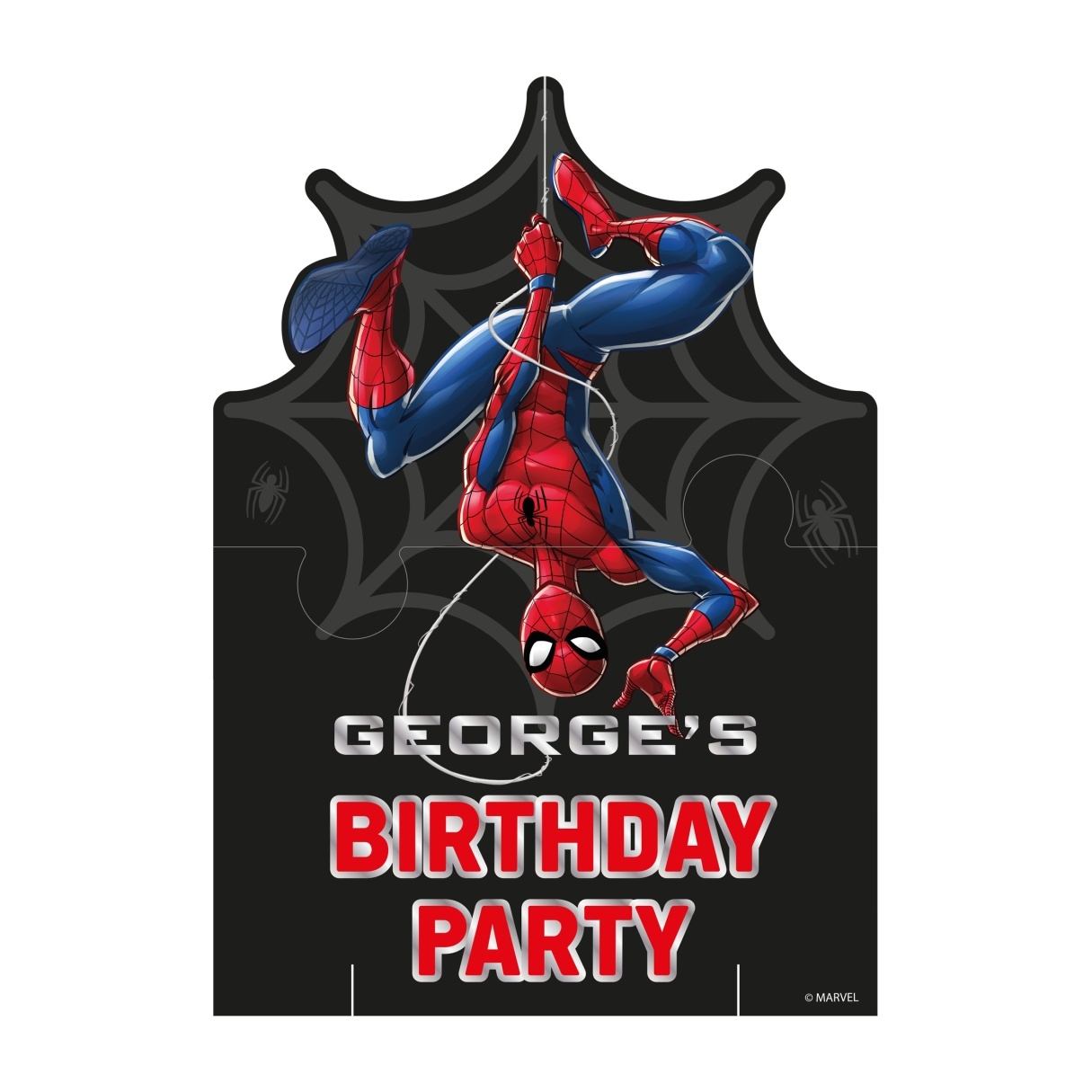Cartel personalizable de Spiderman pensado para decorar cumpleaños infantiles con un toque heroico.