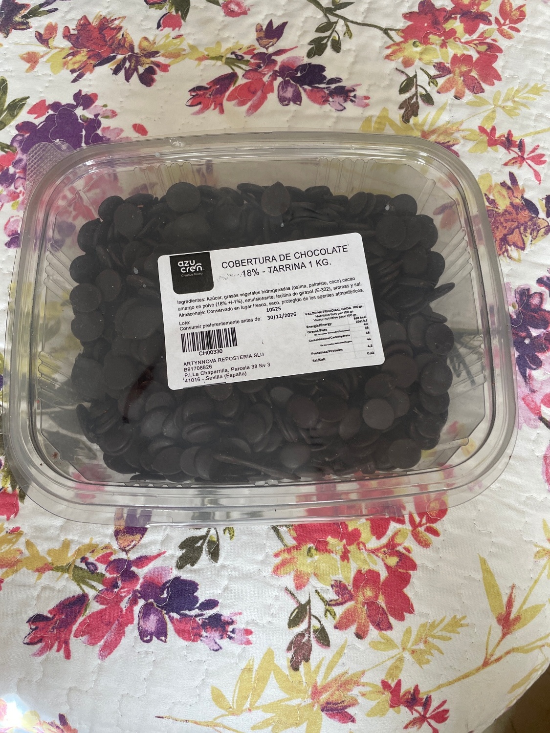 Cobertura de chocolate (18% cacao) de 1 kg - Azucren