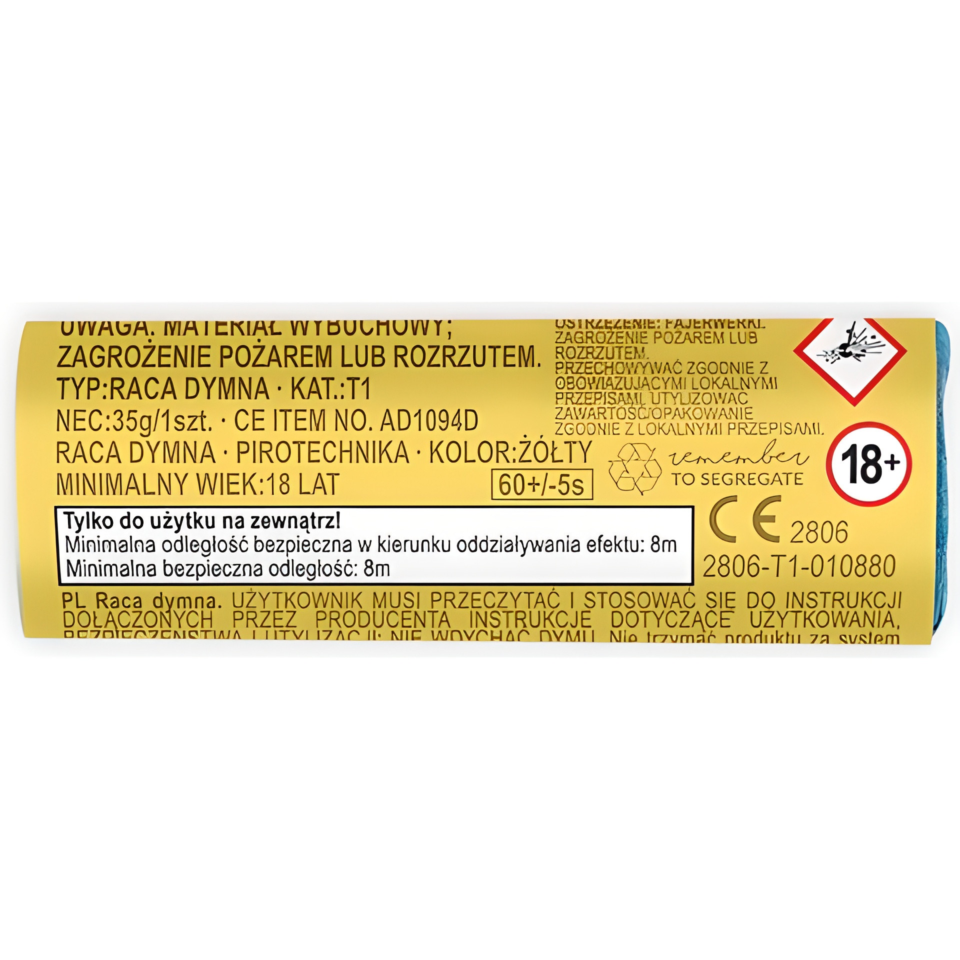 Bomba de humo con polvo amarillo que genera un denso y llamativo humo de color intenso. Diseño compacto, pensada para crear efectos visuales impactantes en sesiones fotográficas y celebraciones.
