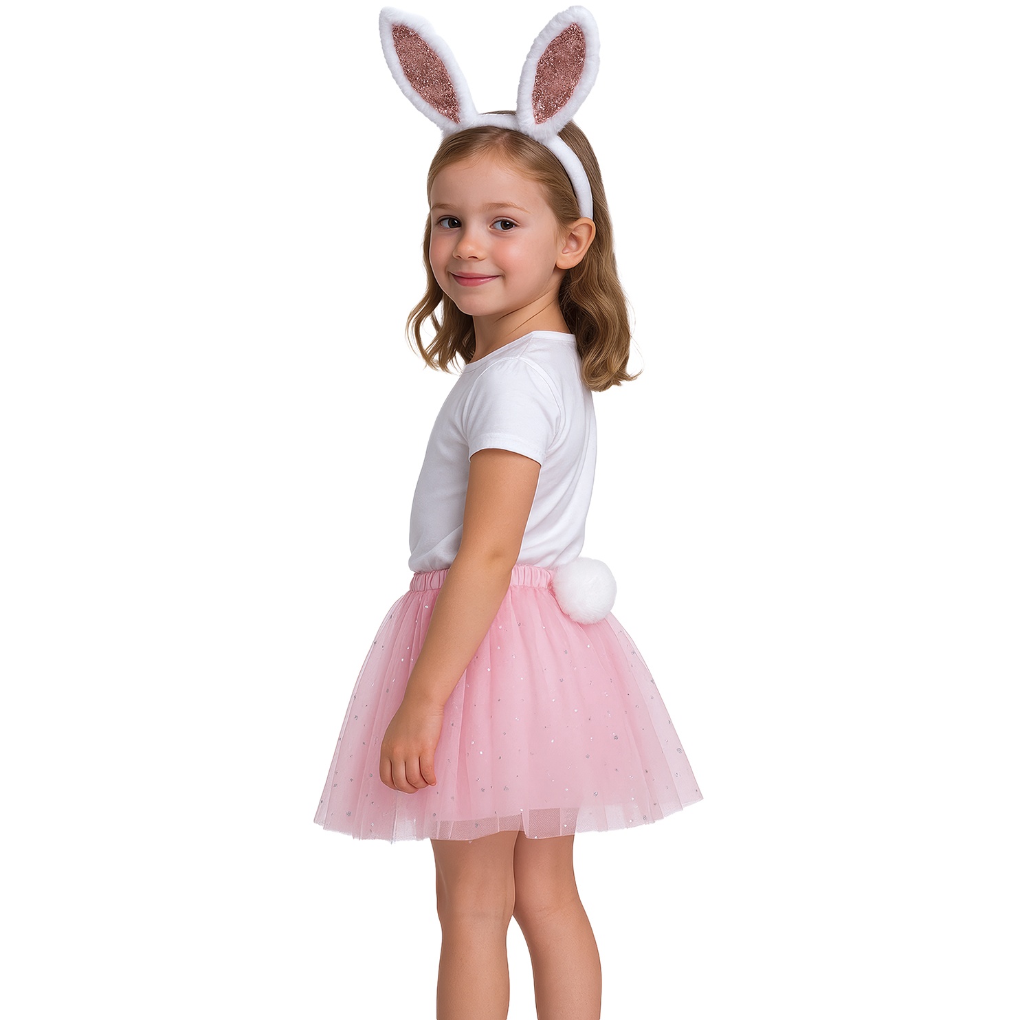 Conjunto infantil pensado para crear un look de conejita dulce y divertido. Ideal para juegos, fiestas de cumpleaños y Carnaval. Piezas cómodas y ligeras que combinan fácilmente con la ropa del día a día. Diseño con detalles brillantes para un toque especial en cualquier celebración.
