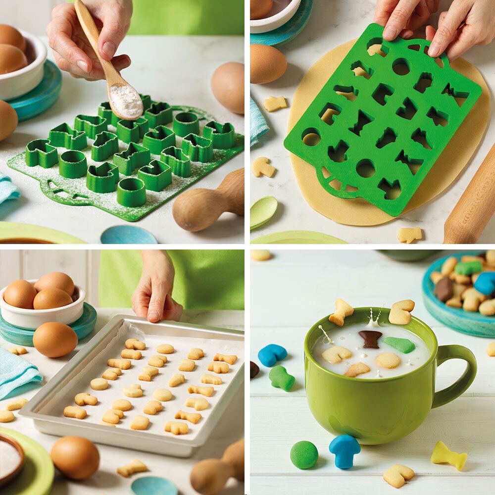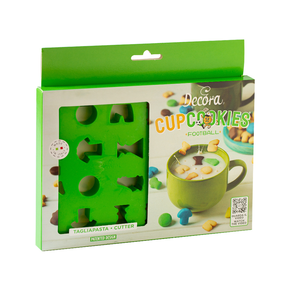 - Un cortador de galletas multiforma con prácticas asas laterales, perfecto para preparar galletas pequeñas de temática fútbol.