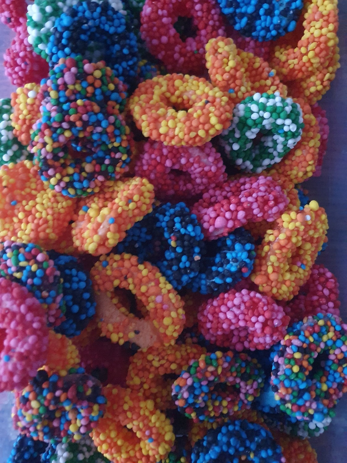 Ingredientes: azúcar, jarabe de glucosa, agua, harina de arroz, gelatina bovina halal, acidulantes: E296, E330, estabilizantes: E350ii, agente de recubrimiento: E414, aromas, colorantes: E102, E122, E129, E133, E158. E102, E122 y E129 puede tener efectos negativos sobre la actividad y la atención de los niños.