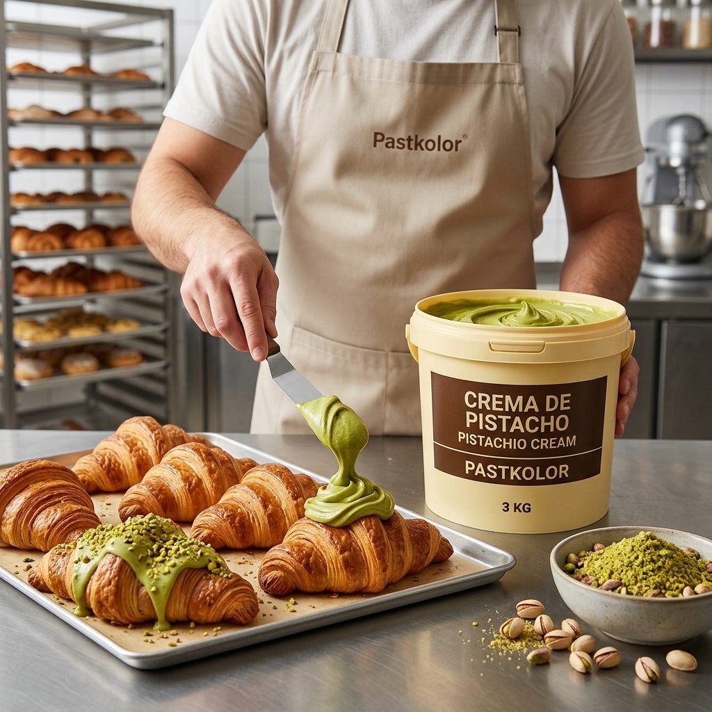 Ingredientes: Azúcar, grasas vegetales (aceite de girasol y de palmiste en proporciones variables), pasta de pistacho, suero de leche en polvo, leche desnatada en polvo, emulgente (lecitina de girasol), espesante (E1414) y aroma.