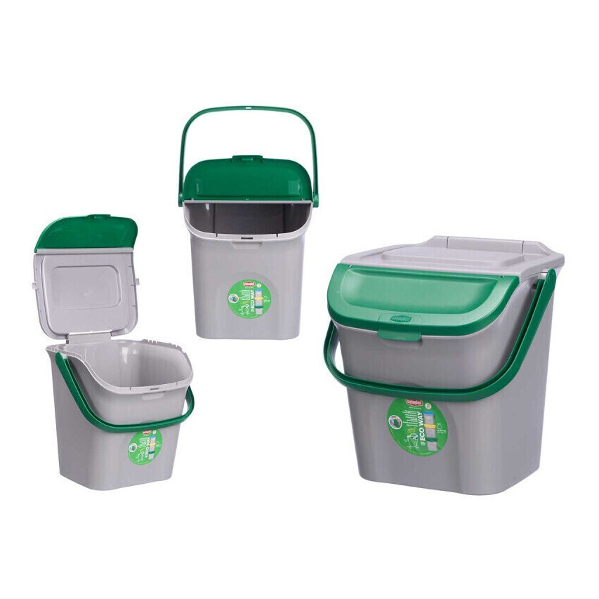 Cubo de basura de 28 L ecoway apilable verde