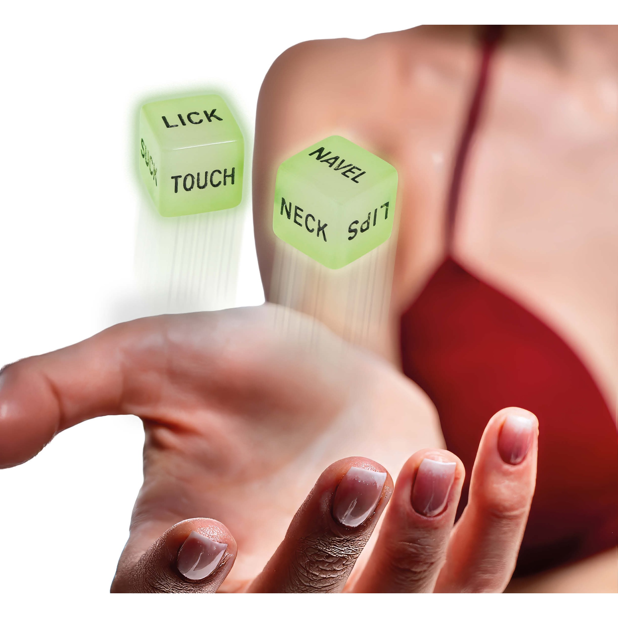 Cada dado presenta acciones y partes del cuerpo impresas en inglés, que se combinan al lanzar para crear retos espontáneos y subidos de tono.