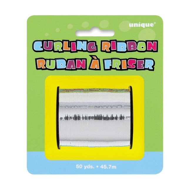 Cinta de lazo disponible en color dorado y plateado que sirve para sujetar los globos, para envolver regalos o para cualquier manualidad que se te ocurra.