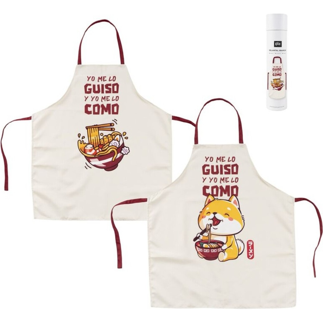 - Impresión con colores vivos que destaca sobre el fondo claro del delantal.