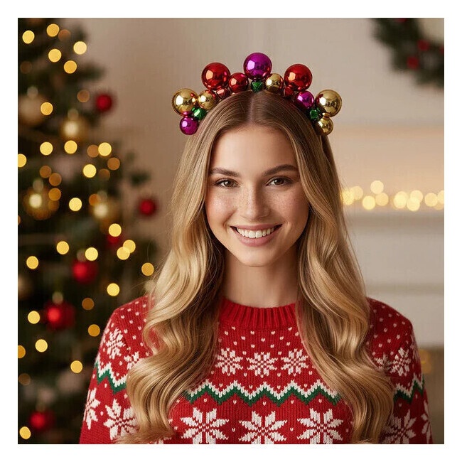 - Su elegante diseño con bolas navideñas y cascabeles de colores, la convierten en el accesorio perfecto para brillar estas fiestas.