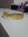 Esta es una corona en forma de diadema metálica en color dorado con hojas de laurel por toda la parte delantera.