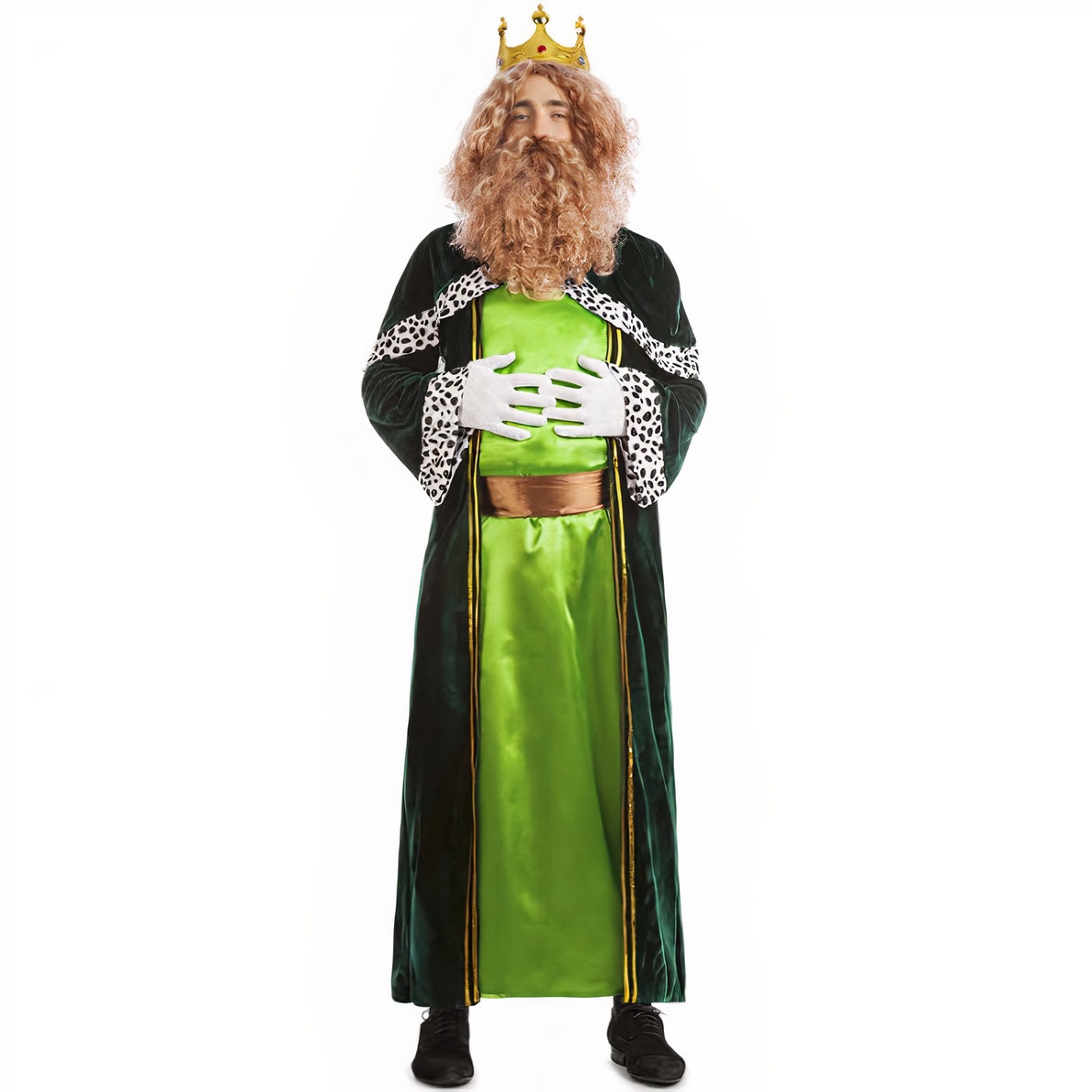 Completa el modelo con accesorios de nuestra tienda como una peluca más barba en color blanco y una bonita corona dorada, así conquistarás con ilusión a todos los niños y niñas de las cabalgatas.