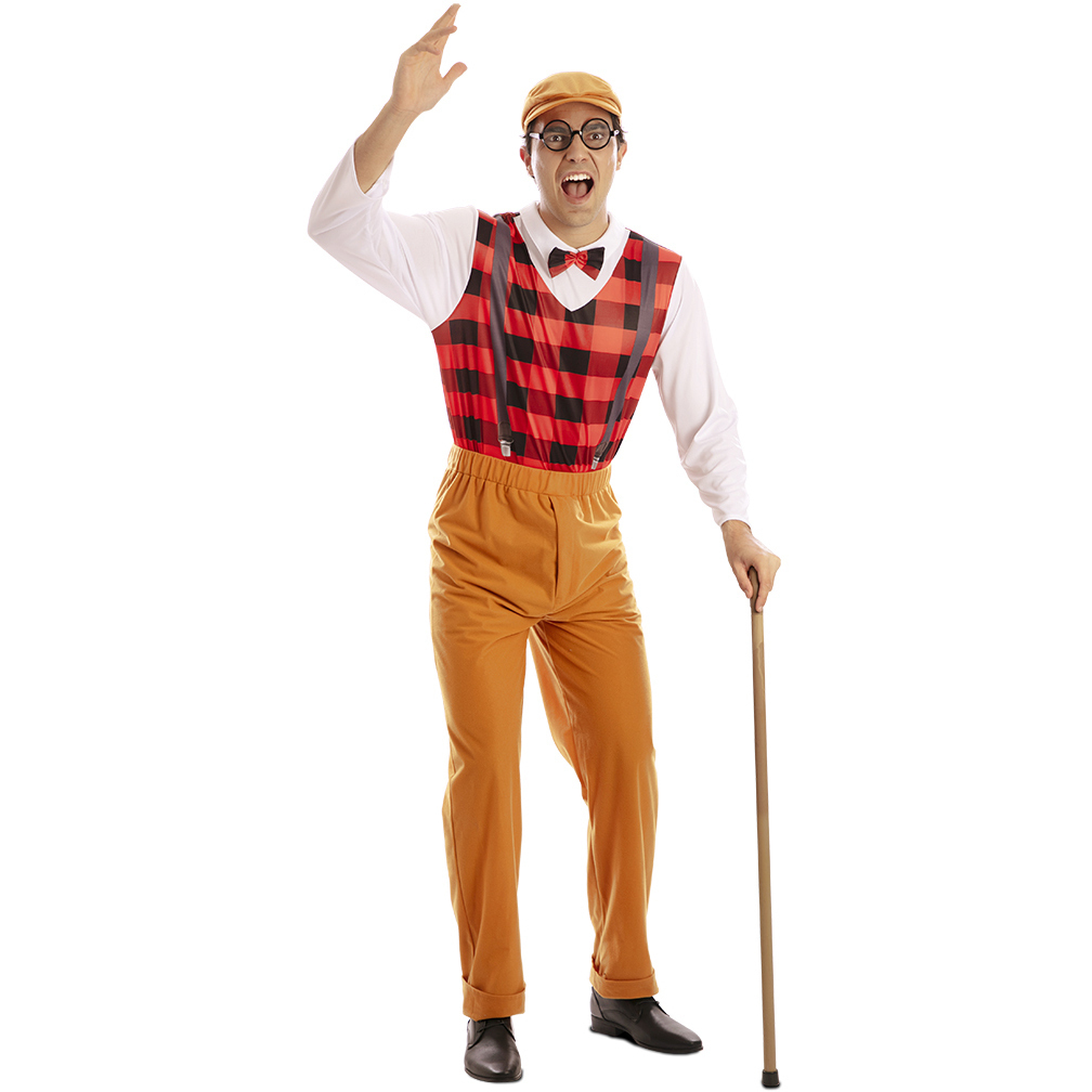 Disfraz de anciano a cuadros para hombre
