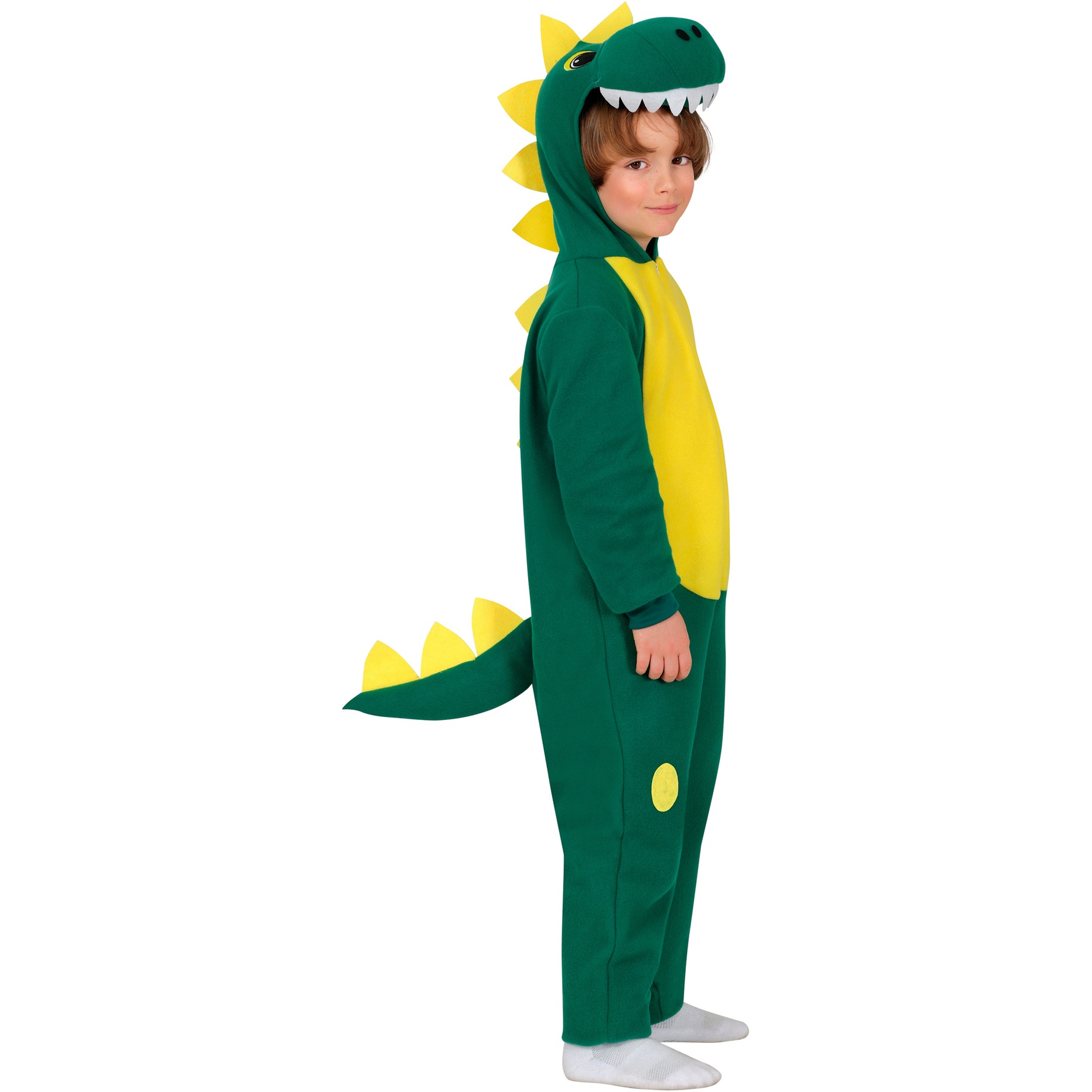 Conviértete en un divertido dinosaurio con este modelo que combina los colores verde y amarillo creando una combinación perfecta.