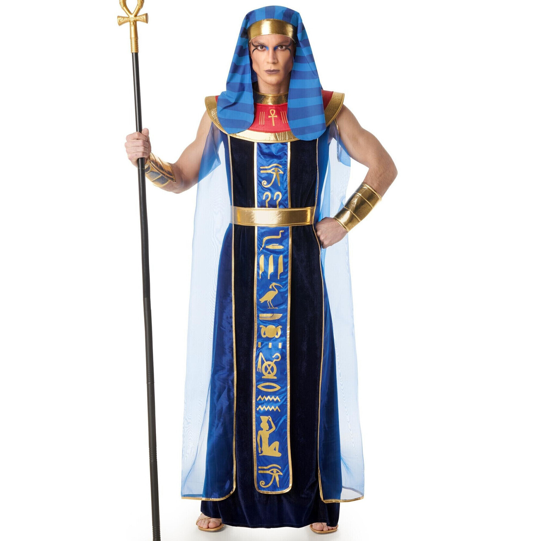 Impresionante modelo de faraón egipcio para hombre con tela de imitación al terciopelo. Ideal para impresionar en carnaval o en cualquier fiesta de disfraces.