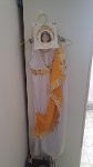 Precioso vestido de emperatriz romana para las más pequeñas de la casa, compuesto por un largo vestido blanco, acompañado de unos bordados en dorado y una preciosa forma triangular en el pecho.Trae colgando desde el hombro un manto amarillo con bordados a juego con el vestido.