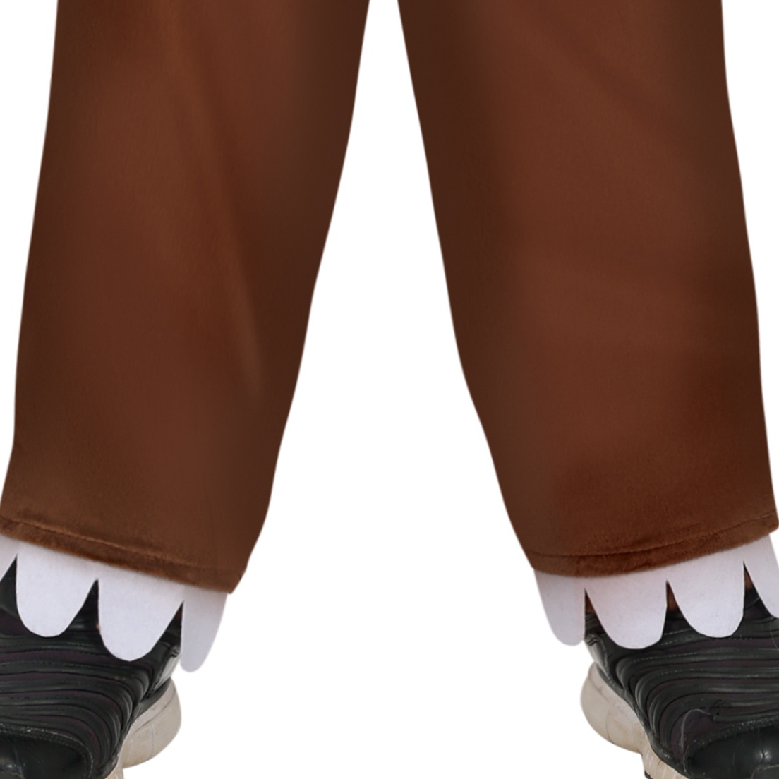Consta de un mono marrón con capucha que se cierra por delante con cremallera por lo que es muy cómodo de poner y quitar.