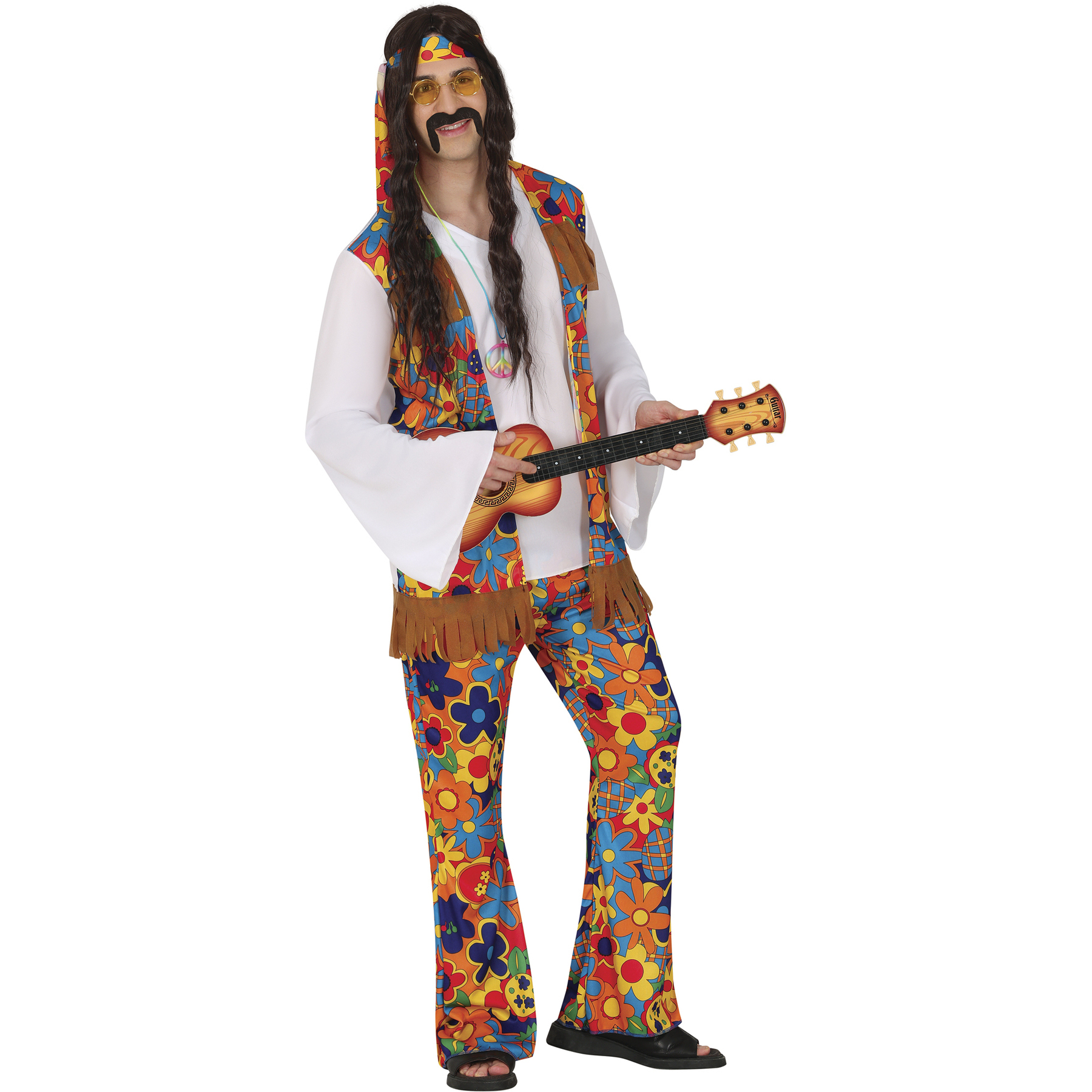 Hilarante disfraz de hippie para hombre con el que podrás convertirte en ilustres de este icónico movimiento de los años 60.