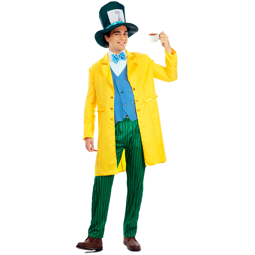 Disfraz de sombrerero loco amarillo y verde para hombre