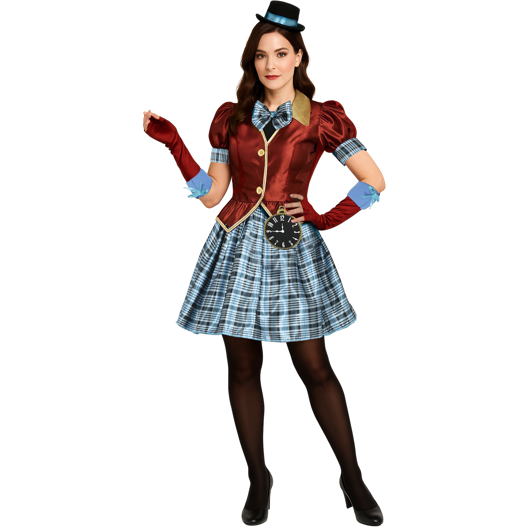 Divertido modelo de sombrerera loca para mujer. Se tarta de un vestido que se completa con un sombrero y unas mangas.
