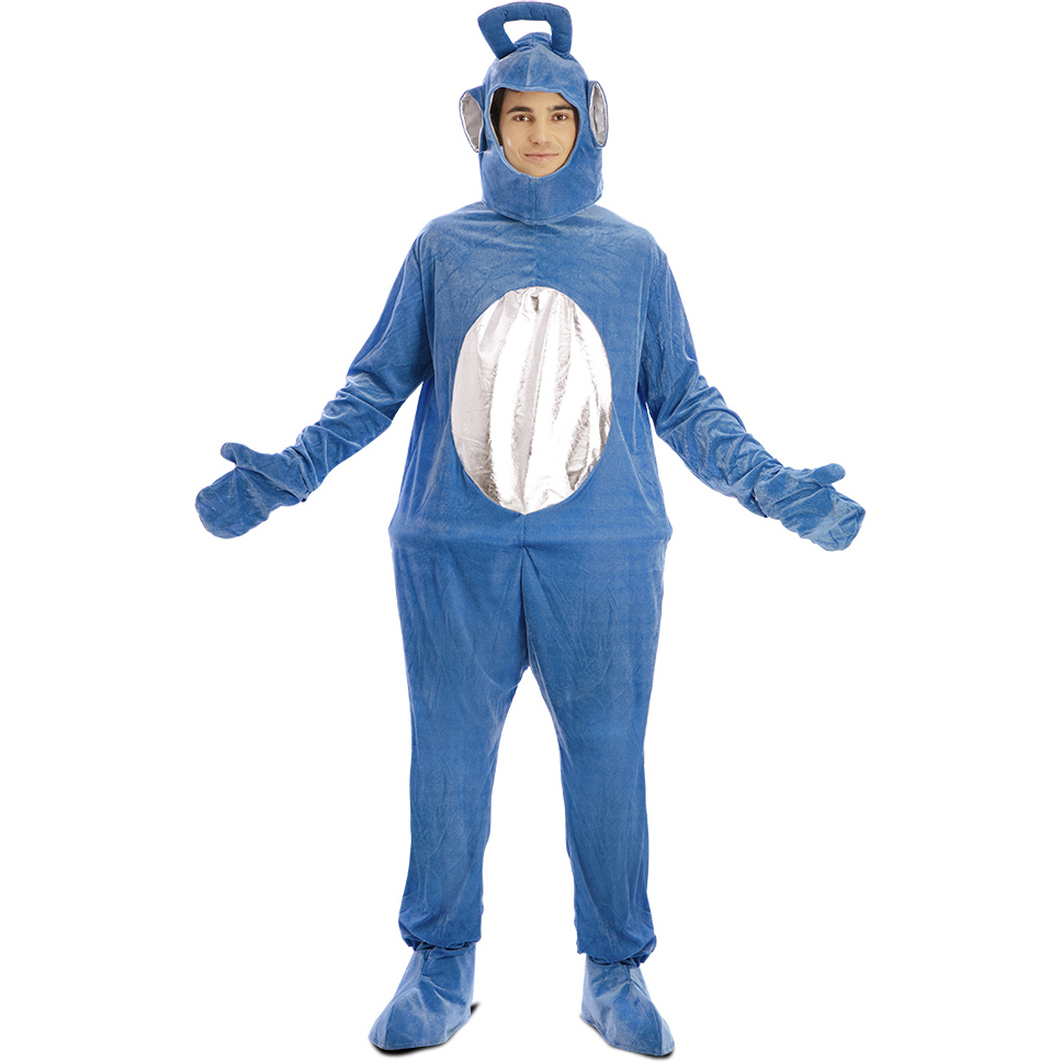 Se trata de un disfraz para adulto que nos recuerda a uno de los personajes de lo Teletubbies. Este en concreto a Tinky Winky.
