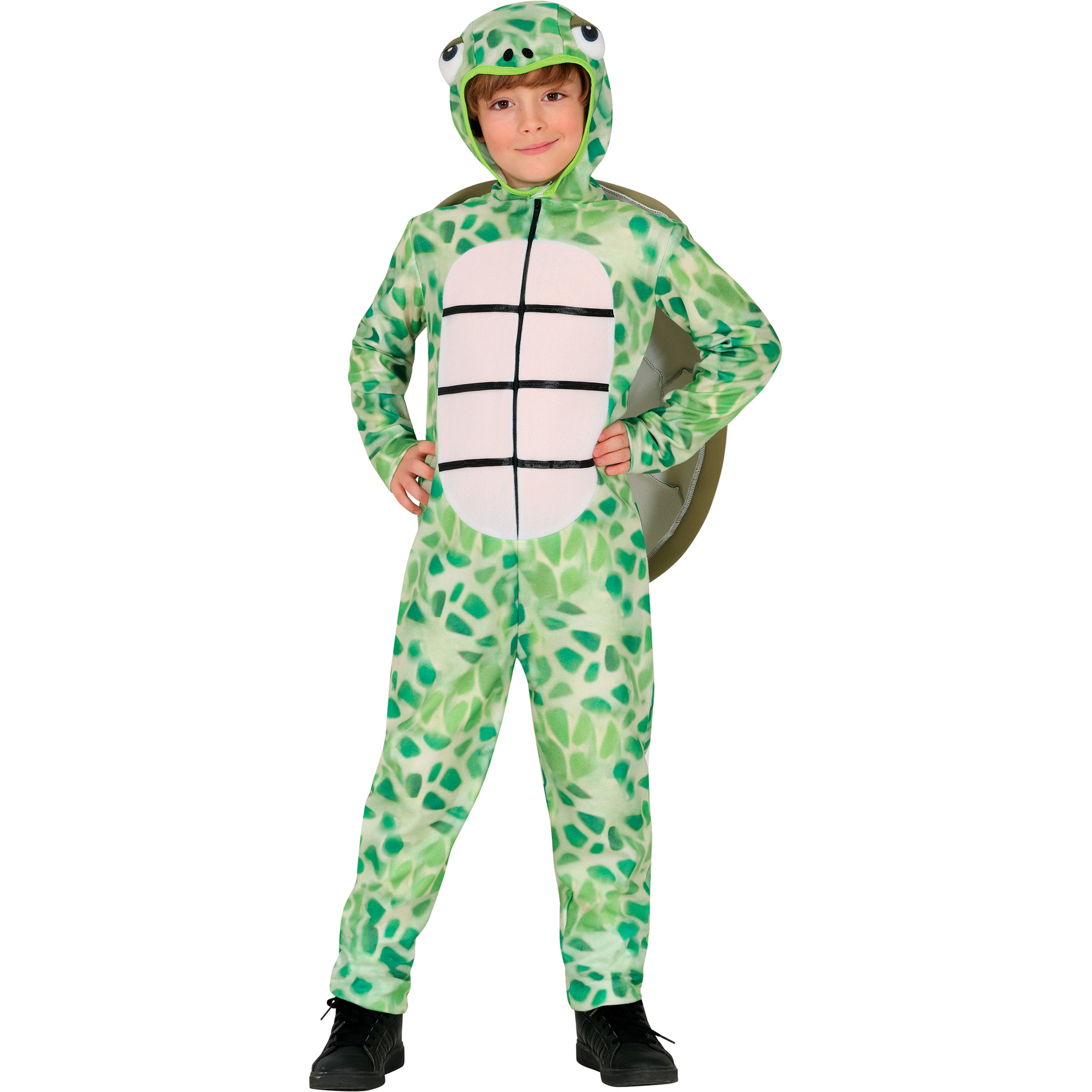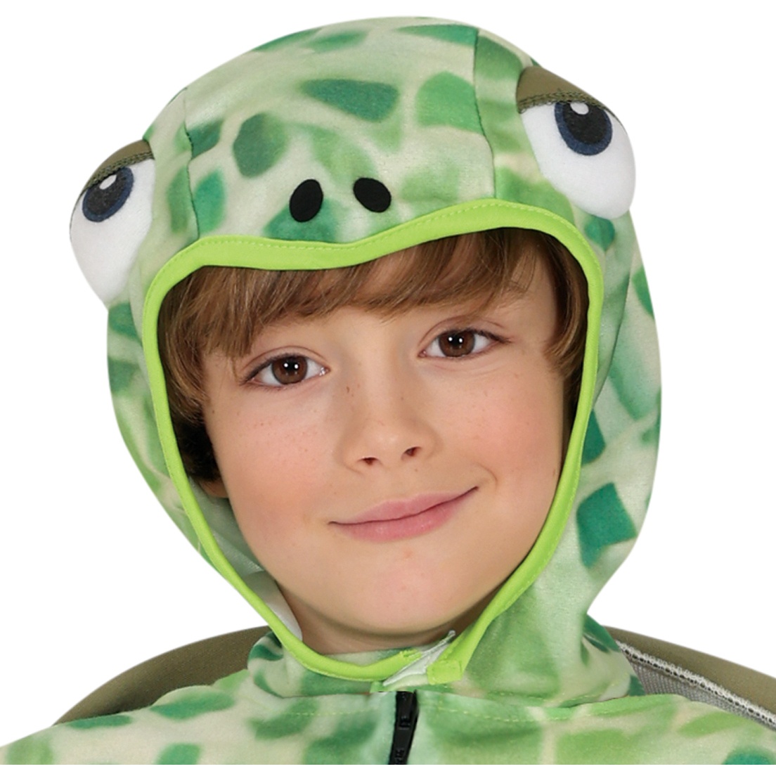 Precioso modelo de tortuga infantil que consta de un mono con un diseño de hojas impreso muy bonito. La capucha viene cogida al mono y éste lleva cremallera por la parte delantera.