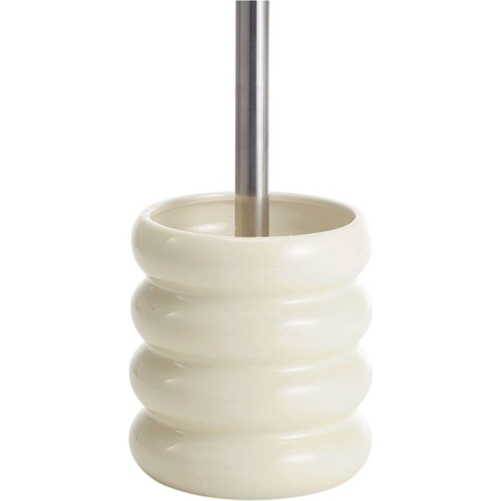Escobillero decorativo de estilo minimalista con un diseño ondulado en color crema que aporta calidez y personalidad al baño.