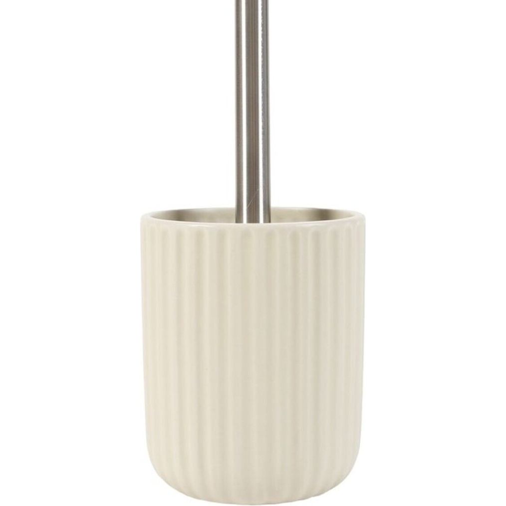 Escobillero de estilo nórdico con acabado crema y superficie acanalada que aporta calidez y sencillez al baño.